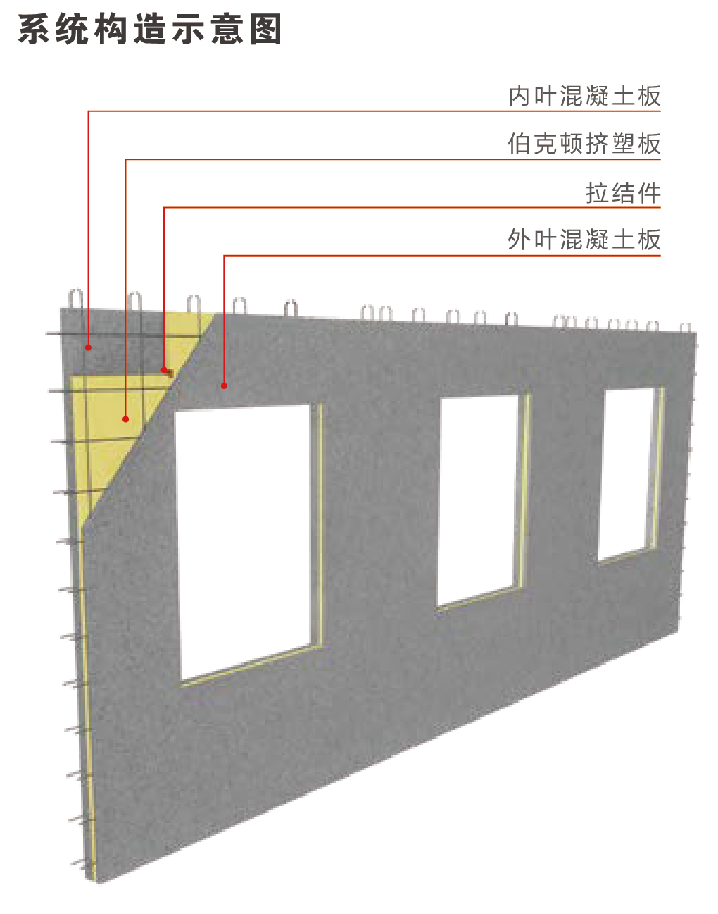 由內葉墻板、夾心保溫層、外葉墻板和拉結件組成的復合 類預制混凝土墻板,簡稱夾心保溫墻板,包括預制混凝土 夾心保溫剪力墻板和預制混凝土夾心保溫外掛墻板。 伯克頓擠塑板導熱系數低,保溫隔熱性能好,預制夾心 墻板有效避免冷熱橋和結露,滿足建筑節能設計需求 伯克頓擠塑板吸水率和水蒸氣滲透系數小,憎水性高, 預制夾心墻板防潮,不透水,不吸水。
